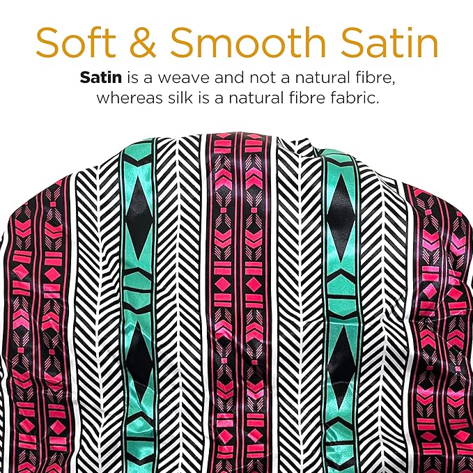 DONNA Jumbo Bow Ribbon Bonnet 1pc Satin Bonnet for Sleeping Removable Reversible Bow Ribbon for Women with Curly Hair, Crochet Hairstyles Silk Hair Accessories Shower Cap Aztec Pattern