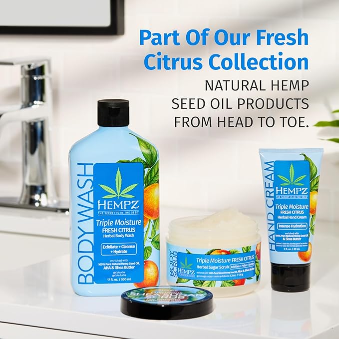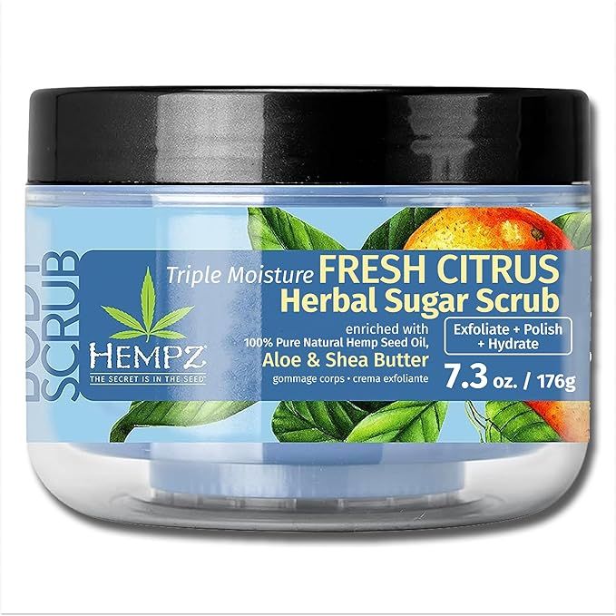 - Smoother Skin - HEMPZ exfoliating body scrub helps remove dirt and impurities for fresher, smoother skin. Our exclusive blend of natural ingredients, including treehut body scrubs, Shea Butter, Sugar and Salt, work together to exfoliate and moisturize skin. Skin is left feeling soft, smooth and invigorated.