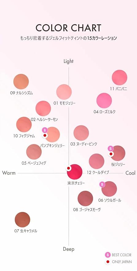 • *New tint of transparent design and handy size Jel-fit tint suggests new look of clear tint, maintaining and completing iconic transparent design of AMUSE. This handy size tint is easy to carry around and expresses color piano of our brand. Colorful dot pattern of outer package reflects bouncy jelly texture and color vibes of AMUSE.