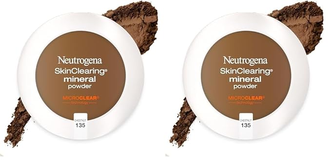 Neutrogena SkinClearing Mineral Acne-Concealing Pressed Powder Compact, Shine-Free & Oil-Absorbing Makeup with Salicylic Acid to Cover, Treat, & Prevent Breakouts, Chestnut 135,.38 oz (Pack of 2)