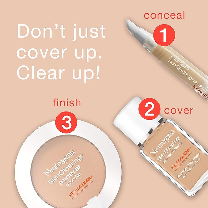 - Neutrogena SkinClearing Mineral Acne-Concealing Pressed Powder Compact facial makeup with salicylic acid acne medication helps cover, conceal, treat, clear, and prevent breakouts