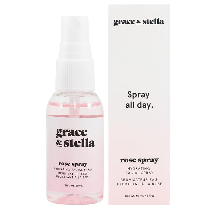 grace & stella Award Winning Rose Water Spray for Face with Glycerin & Aloe Vera - Travel Size (30ml) - Rosewater Face Mist for All Skin Types - Hydrating, Calming, Rejuvenating Facial Toner - Vegan