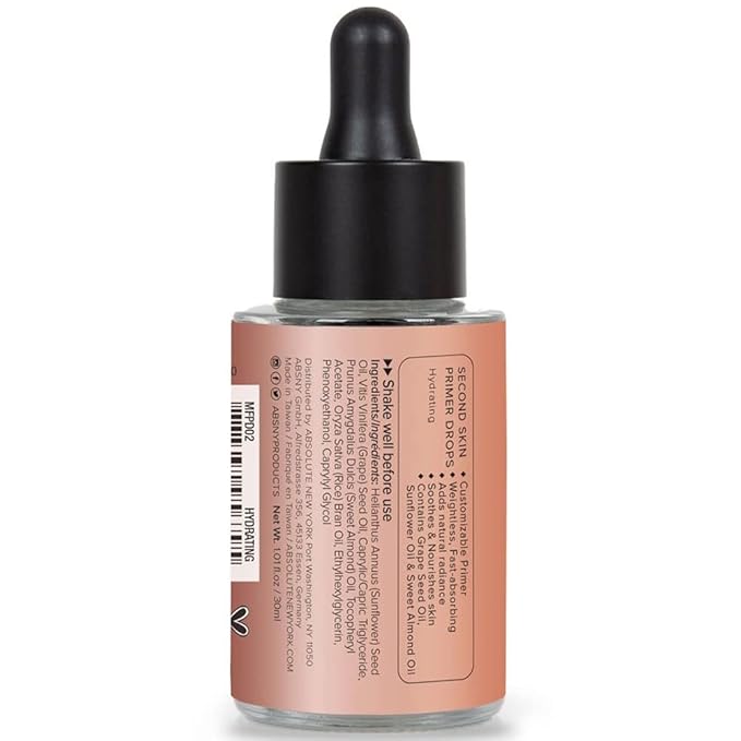 Absolute New York Hydrating Second Skin Primer Drops, Lightweight Makeup Primer for Flawless Complexion, Hydrating Formula, Pore Minimizing, Ideal for All Skin Types
