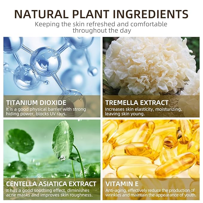 • 【Plant Skin Care Ingredients】The mushroom head air cushion cc cream Contains a variety of natural skin care ingredients, such as Centella asiatica extract, Tremella extract, vitamin E, etc. While applying makeup, it also balances sebum levels, reduces acne, spots, fine lines, and nourishes the skin.