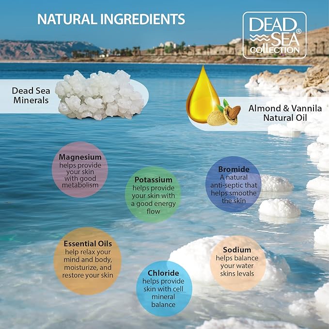 - DEAD SEA MINERALS - all Dead Sea Collection products are a complex variety of unique natural minerals and substances and can be used by both men and women every day. There are certain minerals, like Magnesium and Potassium, which can be found only in the Dead Sea. Minerals help your skin and whole body stay healthy, clean, young, and beautiful all the time!