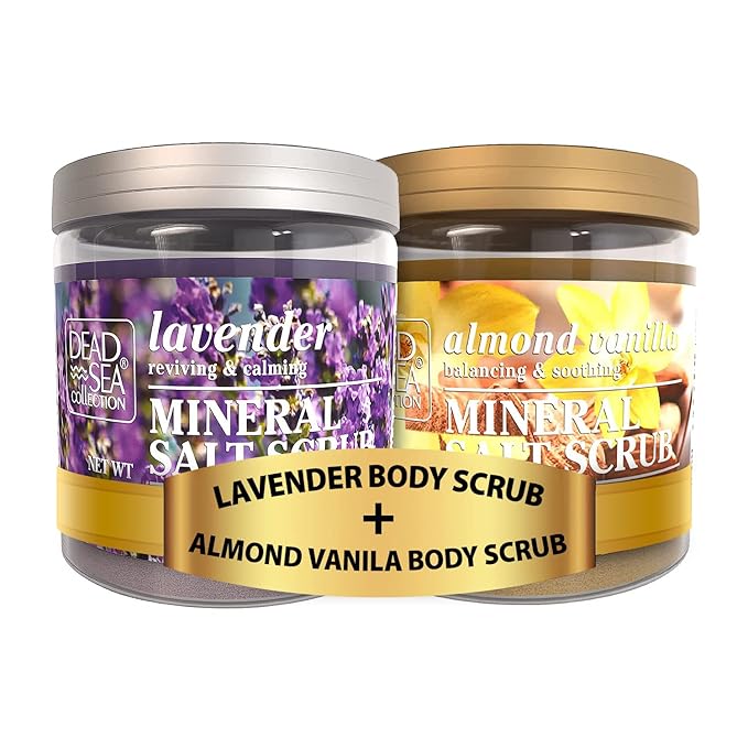 Bundle-Dead Sea Collection Salt Body Scrub -2 X Large 23.28 OZ -Body Scrub Almond Vanilla+ Body Scrub Lavender - Exfoliating Effect - Includes Organic Essential Oils and Natural Dead Sea Minerals