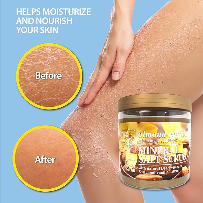 - GOOD VALUE FOR YOUR $ - ONE LARGE JAR 23.28 FL. OZ in every purchase. Our body scrub with Almond Vanilla salt comes with each jar cap sealed. Best offer for your money!