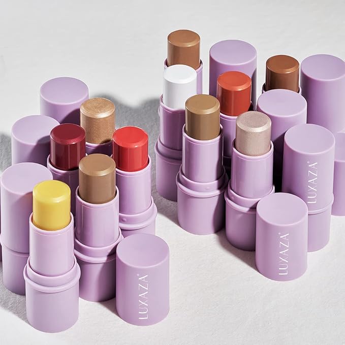 • LUXAZA 4 Pcs Makeup Stick Set: Contains a full-pigmented cream stick with a contouring bronzer stick, highlighting stick, blush stick, and moisture stick in the makeup set. They're multipurpose and you can use them all over your face for a natural-looking and radiant complexion, leaving your skin that glassy. With buildable coverage and excellent blend-ability.The LUXAZA makeup stick allows you to define and illuminate the skin