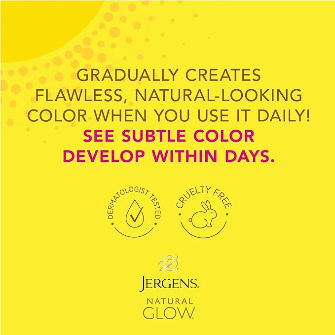 - JERGENS GLOW HEAD-TO-TOE-BUNDLE - This bundle includes 2 Oz Jergens Natural Glow Fair to Medium face moisturizer and 7.5 Oz Jergens Natural Glow +Firming Fair to Medium Daily Moisturizing Body Lotion
