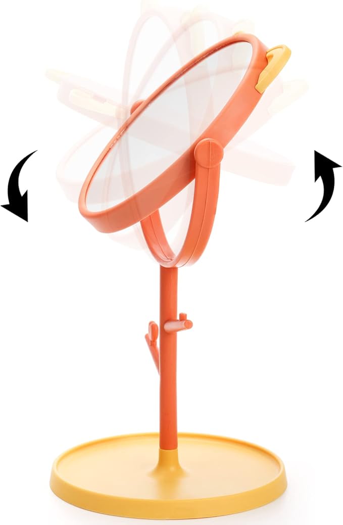 - Thoughtful Design: Our desk mirrors with 360Β° rotation allows you to flip the makeup mirror effortlessly and helps you to adjust suitable angles for touching up. And the detachable base brings convenience for us to pack when traveling. The cute rods can hang your watches or bracelets.