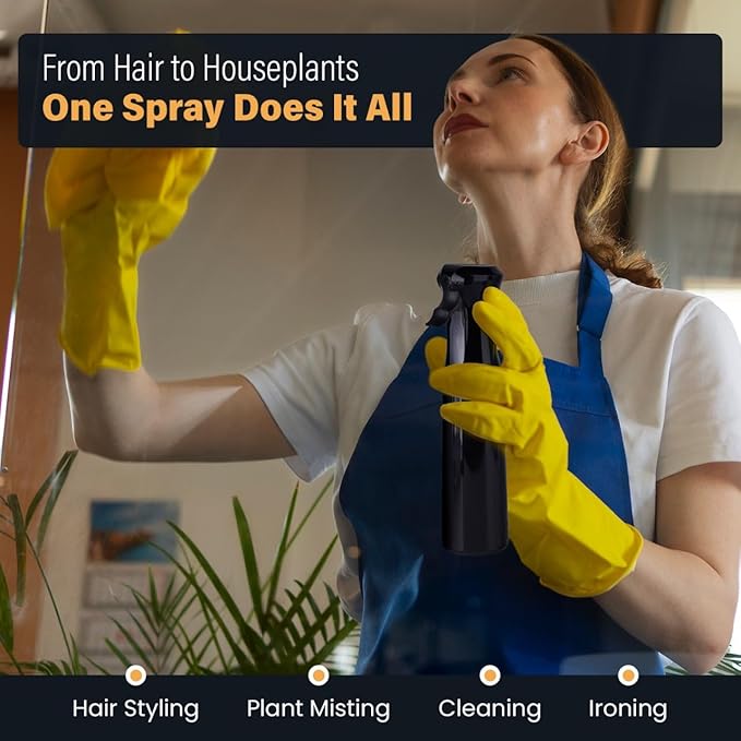 - The powerful and consistent spray of these continuous mist spray bottle can be used for various household and beauty purposes including cleaning, ironing, hair styling, watering plants, dispensing air fresheners, misting essential oils and much more.