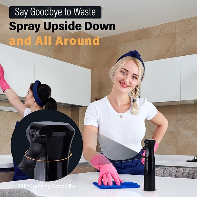- Standard trigger bottles often require multiple squeezes to get the spray started, while 360-degree hairspray bottles deliver a fine, long-lasting mist with just a gentle squeeze. The ergonomic shape and easy-to-grip handle provide comfort during use, ensuring a more enjoyable experience.