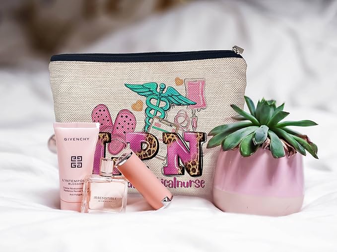 Ayxvt LPN Licensed Practical Nurse Cosmetic Bag,Retro Gorgeous Pink Leopard Clipart Decorative Women's Makeup Bag Zipper Pouch Travel Toiletry,Nurse's Day Nurse Graduation Gifts for Nurse Women Girls