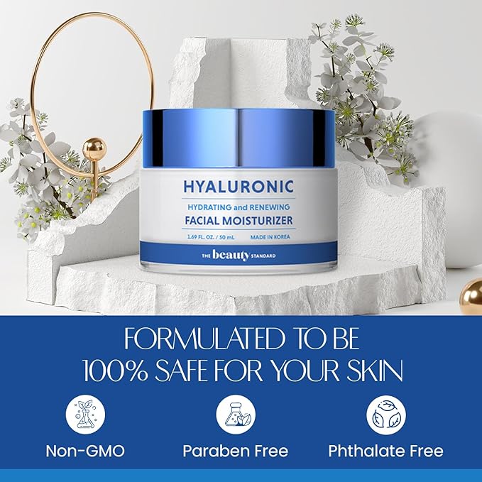 - HYDRATION MEETS LUXURY: Experience the ultimate hydration with The Beauty Standard Hyaluronic Acid Daily Face Moisturizer. This Korean skincare gem is crafted with natural, clean ingredients to smooth and plump your skin, offering long-lasting moisture and a youthful glow.