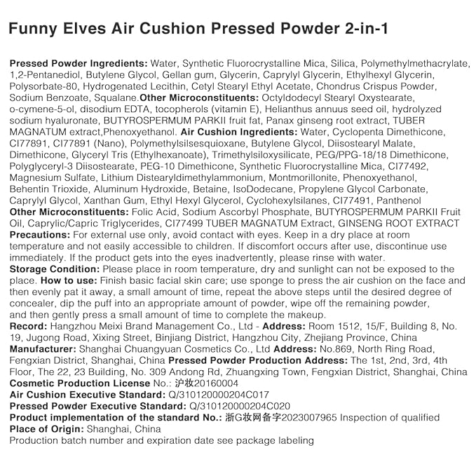 Funny Elves Air Cushion Foundation Pressed Setting Poweder Touch-up Two-in-One Long Lasting Concealer Oily Skin F11 1 Count