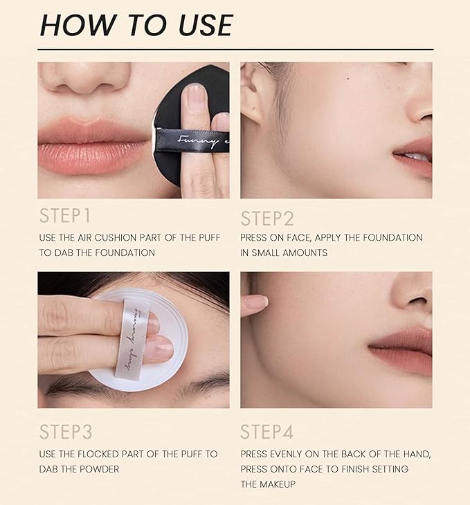 Funny Elves Air Cushion Foundation Pressed Setting Poweder Touch-up Two-in-One Long Lasting Concealer Oily Skin F01 1 Count