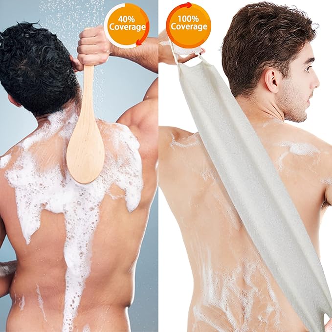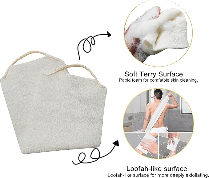 - [Light and durable Washing Back Scrubber Cloth] Measuring 7.28 "x 18.11", these back exfoliating scrubber towels have a quick-drying quality and are also easy to put away for the demands of everyday life or for travel/business,easy to carry.