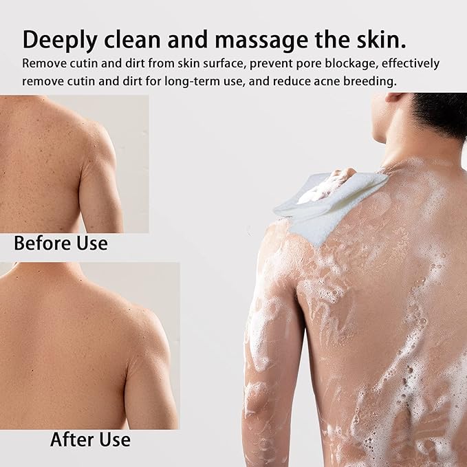 - [Summer Scrubber Towel to Improve Skin Texture] These exfoliating back scrubber towels not only remove dead skin, bumps, ingrown hairs, and keratosis pilosa, but also brighten and improve your skin tone for a healthier, glowing complexion. Using evohyah's bath scrubber towel for shower to give your skin a comfortable massage will not only stimulate the lymphatic system, but also promote the transformation of new cells and even prevent acne.