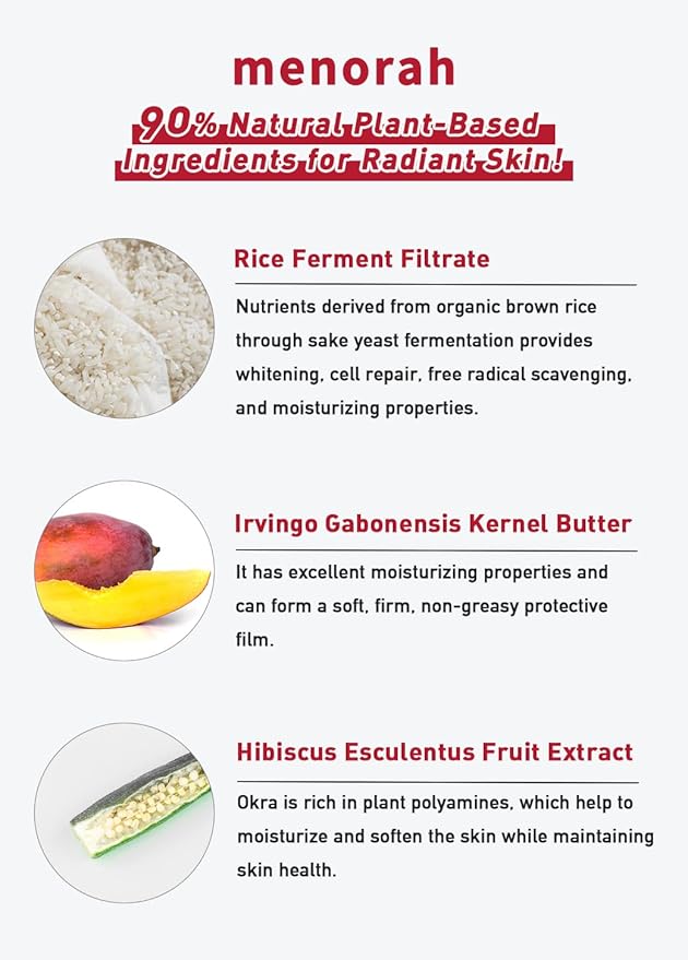 • 【Active Ingredients】: Saccharomyces/Rice Ferment Filtrate, Irvingia Gabonensis Kernel Butter, Hibiscus Esculentus Fruit Extract