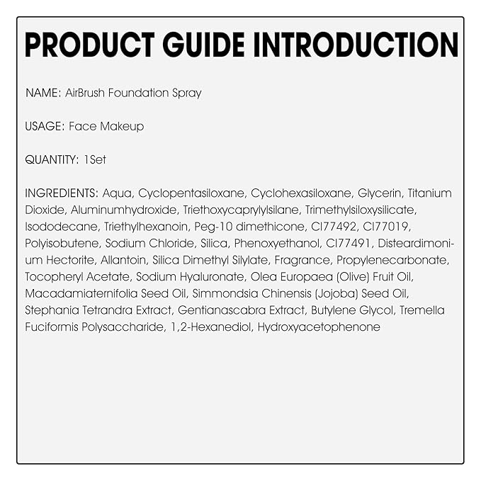【Moisturizing Formula】Our foundation spray is infused with nourishing ingredients like glycerin, sodium hyaluronate, olive oil, and jojoba oil to hydrate and moisturize your skin, leaving it feeling soft and supple. Say goodbye to dry, flaky skin and hello to a radiant, healthy-looking complexion.