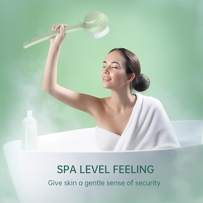 - 【Detachable and Versatile】-Back scrubber for shower exfoliating is made of environmentally friendly.2 adjustable speed modes and 2 brush heads selected.The part of head can be detachable and used alone.Effectively clean the dirt inside the pores, and revitalize the skin.