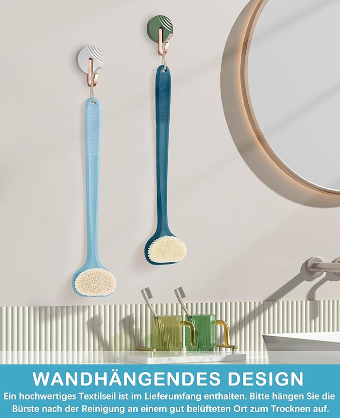 - Convenient Storage & Stylish Design: Equipped with hooks and a soft cotton lanyard, this back brush can be easily hung on the wall for convenient storage. To ensure long-lasting use, let it dry in a well-ventilated area, avoiding direct sunlight and heat. With its stylish, macaron-inspired color options, this back scrubber will add a pop of color and serve as a distinctive focal point in your bathroom.