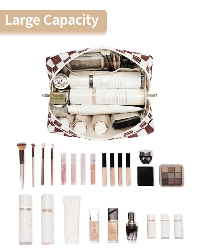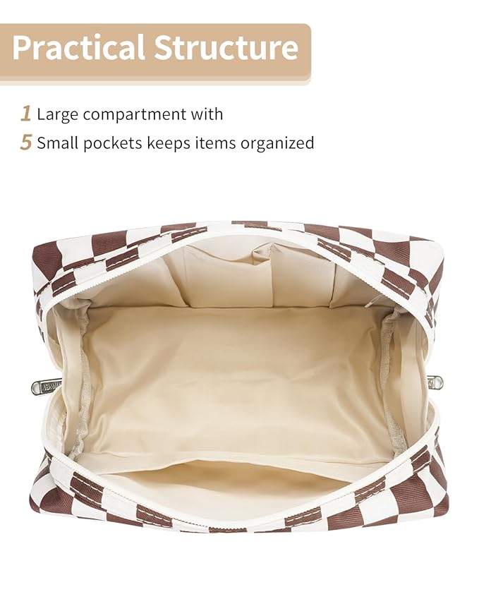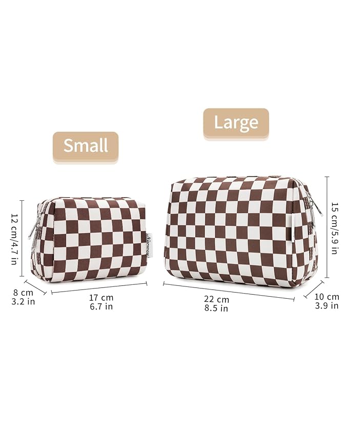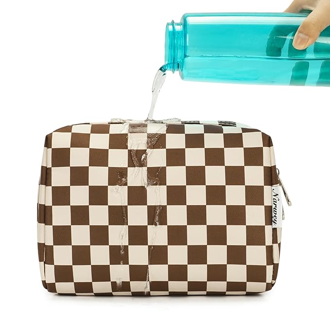 Narwey Checkered Makeup Bag Travel Cosmetic Bag Organizer Toiletry Bag Make Up Bags with Compartments for Women Girls (Large, Dark Checkerboard)