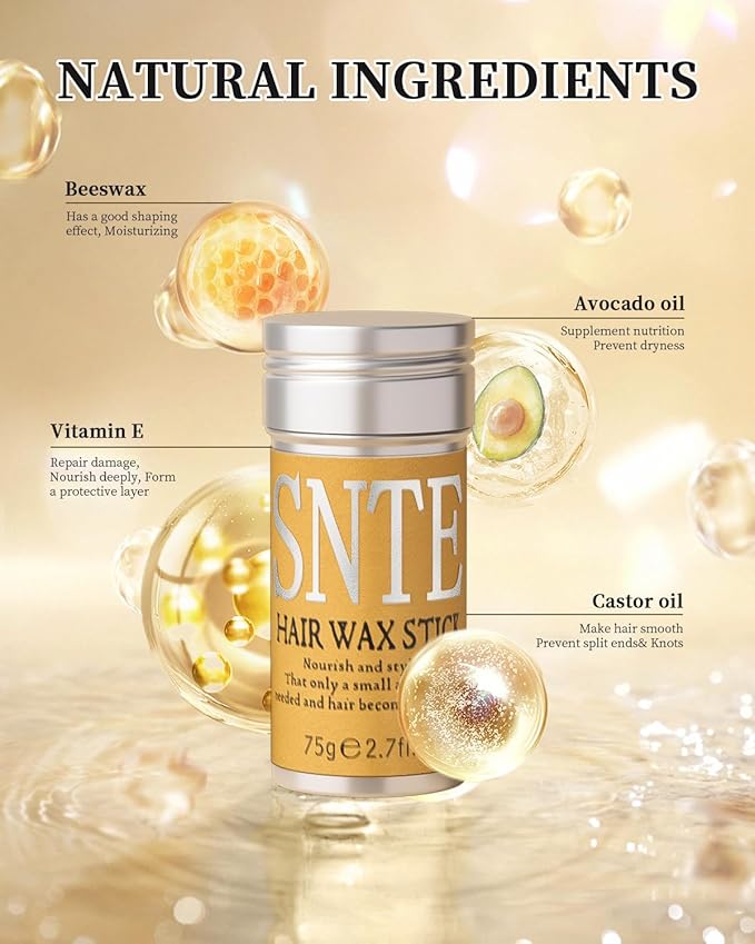 - HAIR WAX STICK SMOOTHING HAIR BRUSH SET: Wax Stick for Hair styling products 2.7 Ounce(1 Pack), edge brush(1 Pack), rat tail comb(1 Pack) and bristle brush(1 Pack), which works well to help you tame edge flyaways and baby hairs, meeting your a variety of different hairstyles needs.
