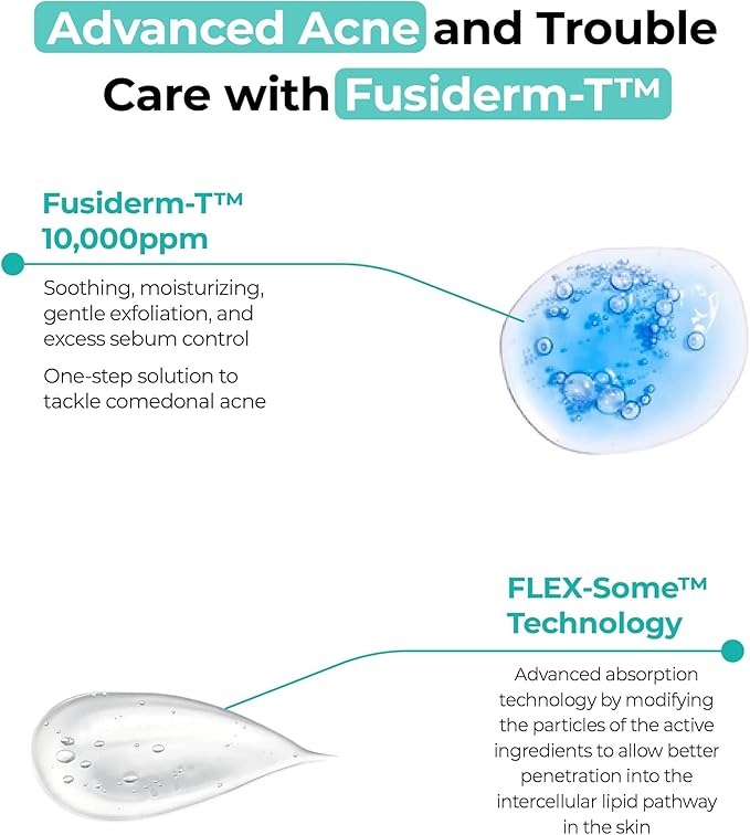 - FUSIDERM-T - Derma Trouble Balancing Toner contains 10,000ppm of the powerful and exclusive ingredient Fusiderm-T, a patented formulation developed by Dongwha Pharmaceutical that has soothing, moisturizing, gentle exfoliation, and excess sebum controlling effects to provide a one-step solution to comedonal acne.