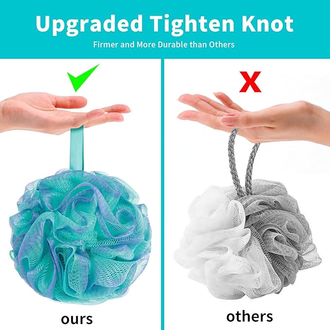 • Strong Knotting Design: The improved version of the loofahs adopts special reinforcement and knotting technology, which greatly enhances the firmness and durability of the internal connection of the bath sponges.