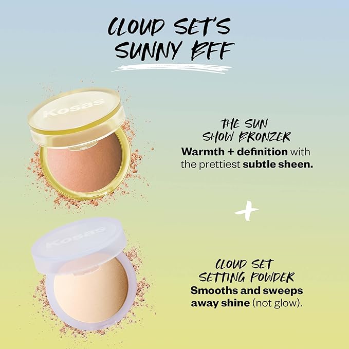 Kosas Sun Show Glowy Warmth Baked Bronzer - Contouring Powder for Cheekbones, Nose & Jawline - Enriched with Concentrated Fatty Acids - Talc-Free, Vegan & Hypoallergenic - Waves