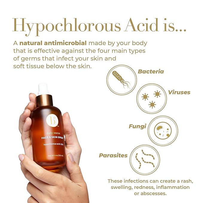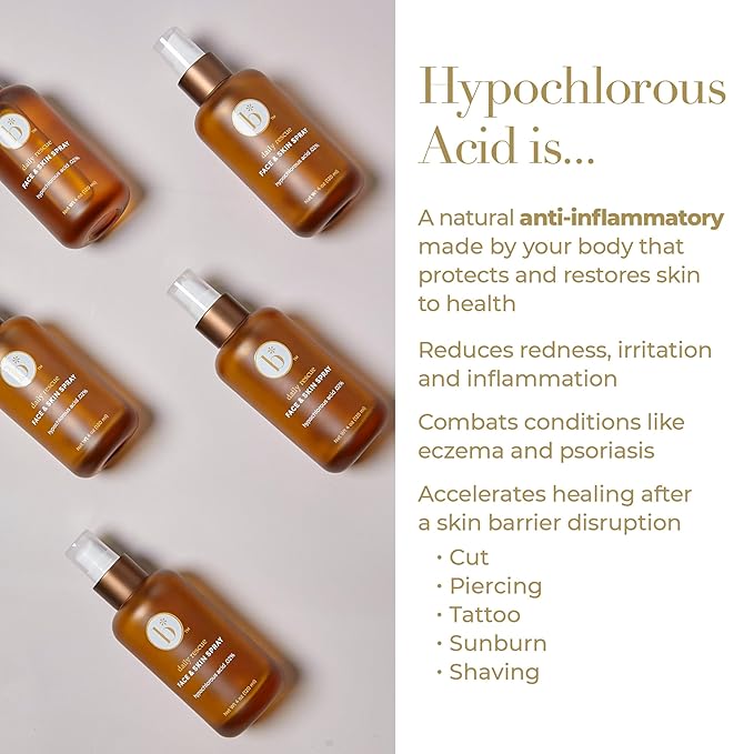 - ✅ REDUCES REDNESS: Our hypochlorous acid spray for skin is a natural agent that helps to reduce redness caused by acne, rosacea, and other skin conditions. This all-natural, product is fragrance-free and made at a pH of 5.7 (the same pH as healthy skin) to ensure it is incredibly gentle for all skin types.