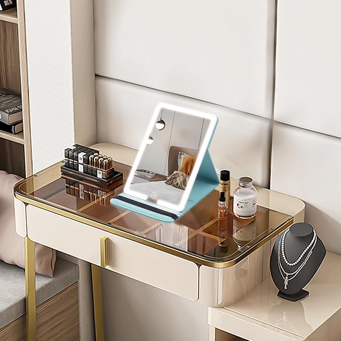 - 【Adjustable Lighted Makeup Mirror】This makeup mirror provides 3 color light modes: Warm, Natural and Warm Light . Long press the touch button to adjust the brightness. LED makeup mirror allows you to dress yourself carefully under comfortable lighting, while also protecting your eyes. The cosmetic mirror perfect for makeup, skincare, shaving, exfoliating and more.