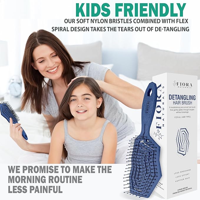 - Kids Friendly Detangler Brush - For parents with little girls and toddlers, we promise to make the morning routine less painful. Our soft nylon bristles combined with flex spiral design takes the tears out of de-tangling