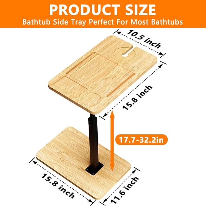 - 【Bathtub Caddy Tray Fits Most Bathubs 】:This tub shelf for bathtub is perfect addition to your at-home spa: When relaxing in the bubble bath, your biggest worry is dropping your books or cell phone, this wooden bathtub table stand can meet your needs, avoid that from happening, the bathtub table stand can protect your tablet, cell phone. Our bath tray is great for a tub with no ledge or a small lip on the inside of your tub. You won’t have to worry about it slipping off!!!