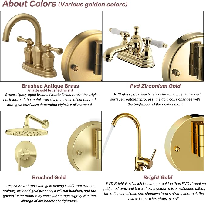 • Premium PVD Zirconium Gold Wall Mount Makeup Mirror: Glossy zirconium gold finish after the Physical Vapor Deposition (PVD) process, noble and luxurious. Not only a high-quality bathroom wall vanity mirror but also an exquisite piece of interior craftsmanship