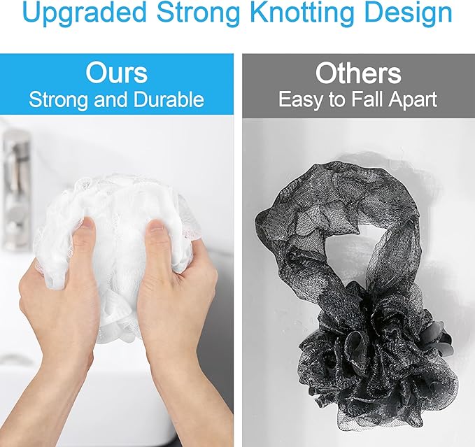 • Strong knotting design: The improved version of the loofah adopts special reinforcement and knotting technology, which greatly enhances the firmness and durability of the internal connection of the bath sponge.