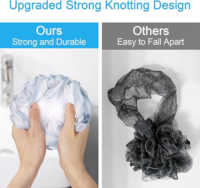 - Nice foaming effect: The AmazerBath loofah sponge has a dense, fluffy mesh that allows you to create a rich and luxurious lather with just a small amount of body wash or soap. (Using AmazerBath loofa can save you 20% of the shower gel)