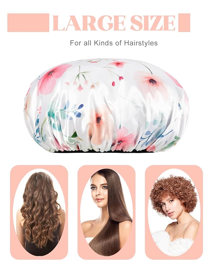 • 【LARGE SIZE】Auban LARGE SIZE shower cap can holds all types of hairstyles. Big enough for long hair and curly hair