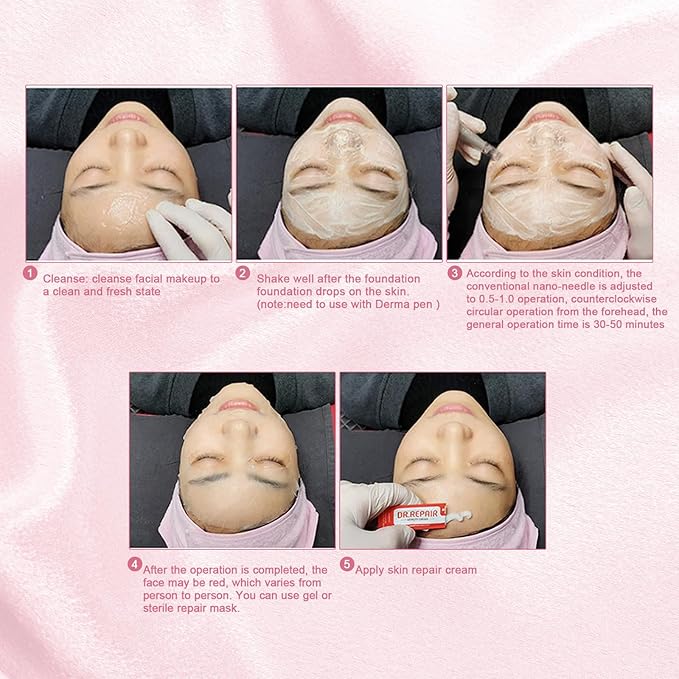 • How to use 1, clean facial skin to keep dry 2, with a towel hot compress 5-10 minutes to open the hair follicles to promote absorption 3, with saline wipe face 4、Drop the foundation on the face and use the microneedle to operate