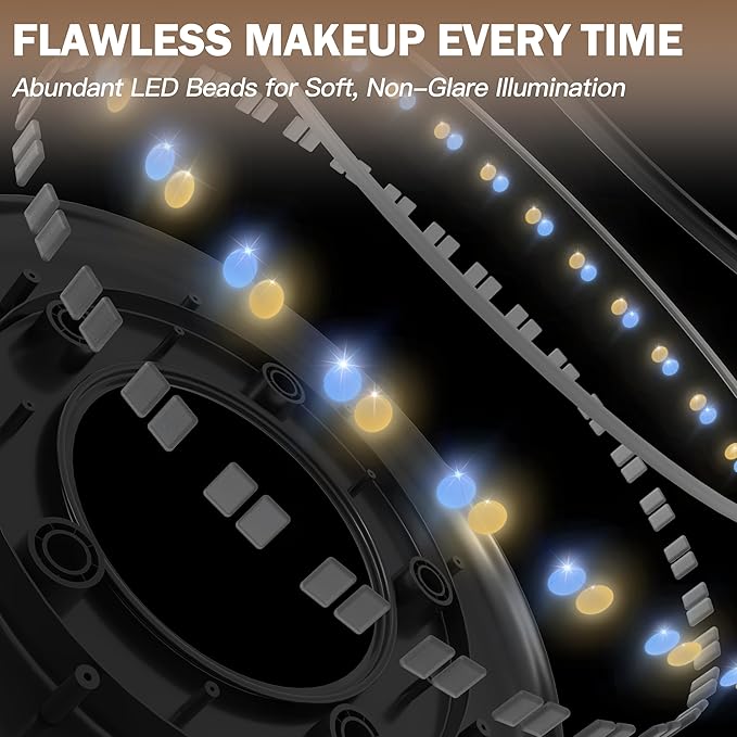 - 【Smart Dimming】 Get the perfect lighting for your makeup with our smart dimming feature. Choose from warm, day, or cool light and adjust the brightness from dim to bright with just a button. Our LED lights also come with eye protection to keep your eyes safe even with the increased light.