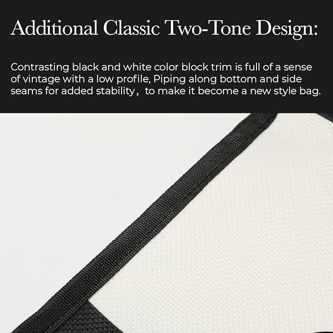 - Additional Classic Two-Tone Design: Contrasting black and white color block trim is full of a sense of vintage with a low profile, Piping along bottom and side seams for added stabilityοΌto make it become a new style bag.