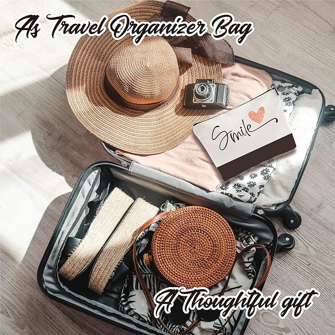 Minimalism Makeup Bag - Smile - Heart Print Cosmetic Bag, Toiletry Bag, Gift For Girls, Besties, Personal Care & Accessories - A28