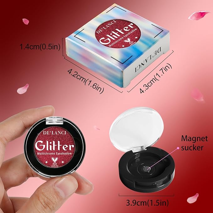 • ❤️ One chrome eyeshadow = few glitter shades. Great for travel, this small red glitter eyeshadow palette offers must-have shades of classic burgundy tones, sparkling copper accents and shimmering chrome ombrés - from subtle to bold - these highly pigmented shades provide long-lasting wearability without fading throughout the day