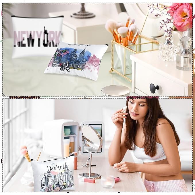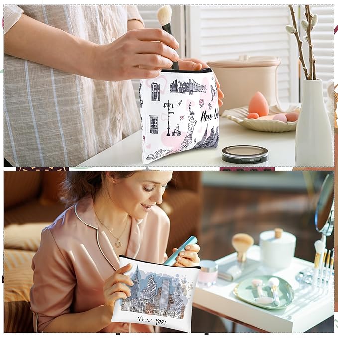 • Multifunctional and Suitable As Gift Items: aside from being a practical and stylish cosmetic pouch, these New York themed bags have a wide range of applications; They seamlessly double as pouch purses that can house your daily items or act as New York souvenirs; These make ideal gift items, ideal for presenting to loved ones who appreciate the aesthetic of New York; Whether it's for a makeup enthusiast or city fanatic, these will be received well