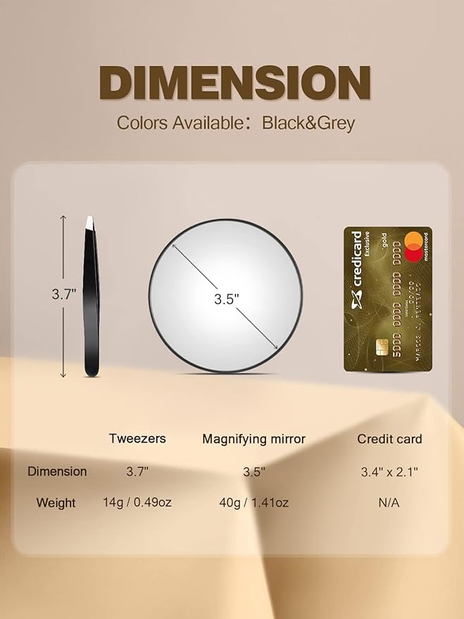 30X Magnifying Mirror with 2 Suction Cups, 3.5 inches Magnified Makeup Mirror and Slant Tweezers,Black,1PC