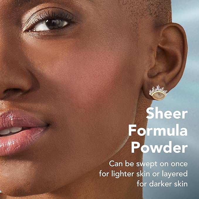 • Sheer formula powder that can be swept on once for lighter skin or layered for darker skin