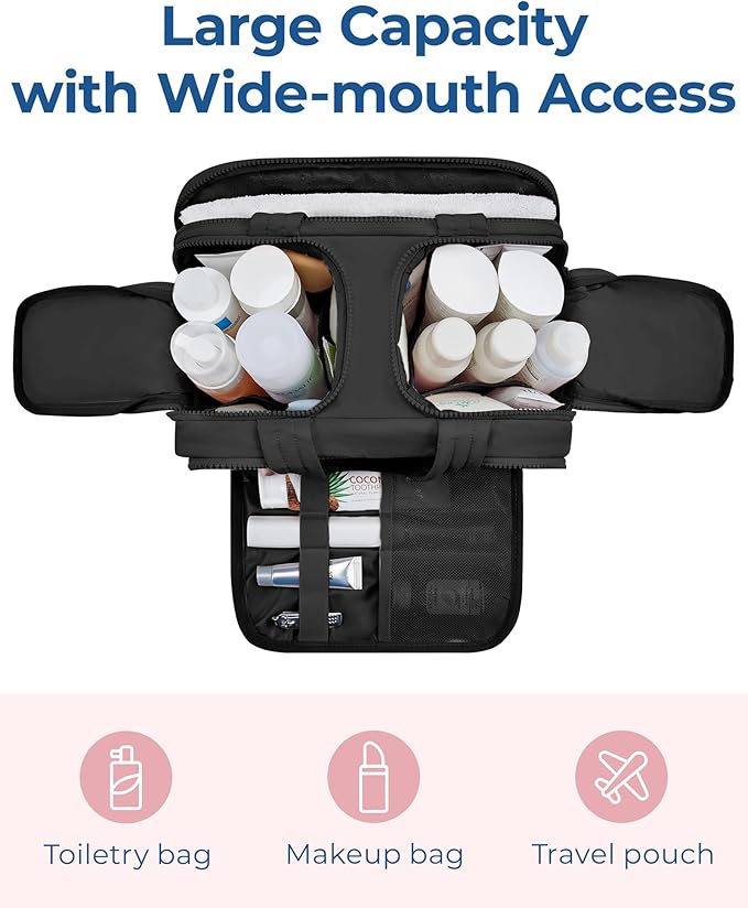 • Excellent Functionality: Unique design allows you to get a travel bag for toiletries, shaving kit or makeup bag, all in one. It's a great choice for business trips, travel, gym, camping, home use, and more