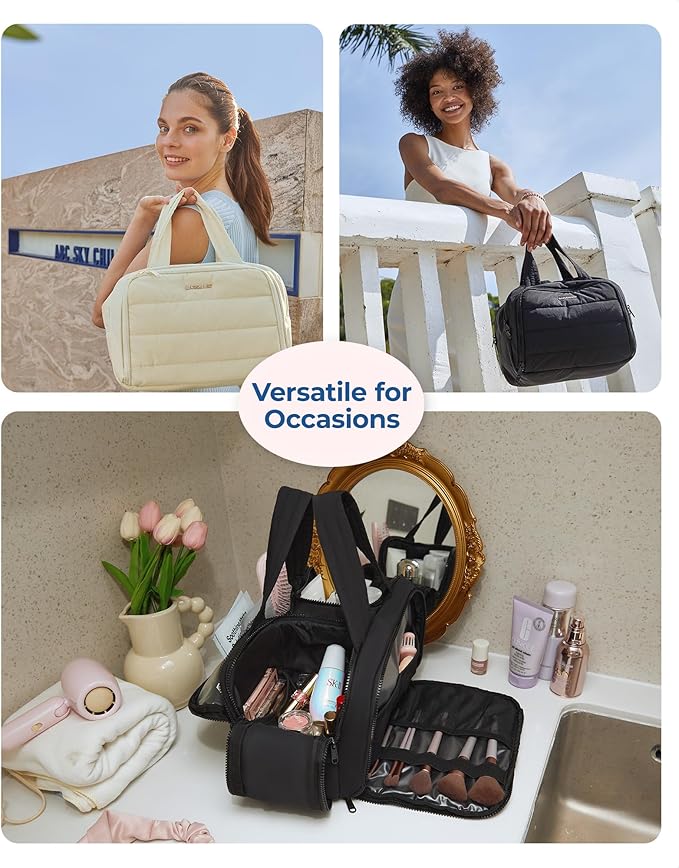• Ultra Light and Soft Materials: Made of soft and luxurious Taslan fabric. This puffer toiletry bag feels like cotton candy, giving people a relaxed and comfortable atmosphere. Also a reliable, functional, and fashionable makeup bag. Efinitely an ideal Christmas gift for yourself, your family, and your friend