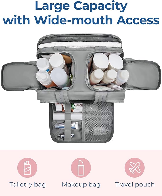 • Excellent Functionality: Unique design allows you to get a travel bag for toiletries, shaving kit or makeup bag, all in one. It's a great choice for business trips, travel, gym, camping, home use, and more